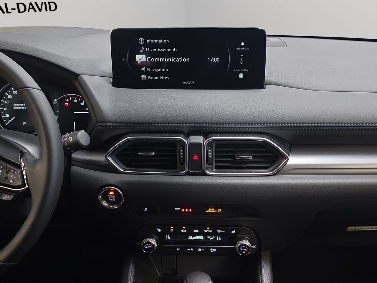 Disponible, awd, roues en alliage, ouverture du hayon à commande électrique avec réglage de la hauteur programmable, dégivreur d’essuie-glace avant, volant chauffant, garnissage en similicuir , phares à DEL , système intelligent de sélection de mode de conduite Mazda (Mi-Drive) avec mode hors route, écran central tactile pour Apple CarPlayMC et Android Auto, services connectés Mazda, Apple CarPlay filaire, Android Auto fililaire, bloc d’instruments avec écran ACL de 7 po, sièges avant chauffants (trois réglages de température),Technologies de sécurité i-Activsense