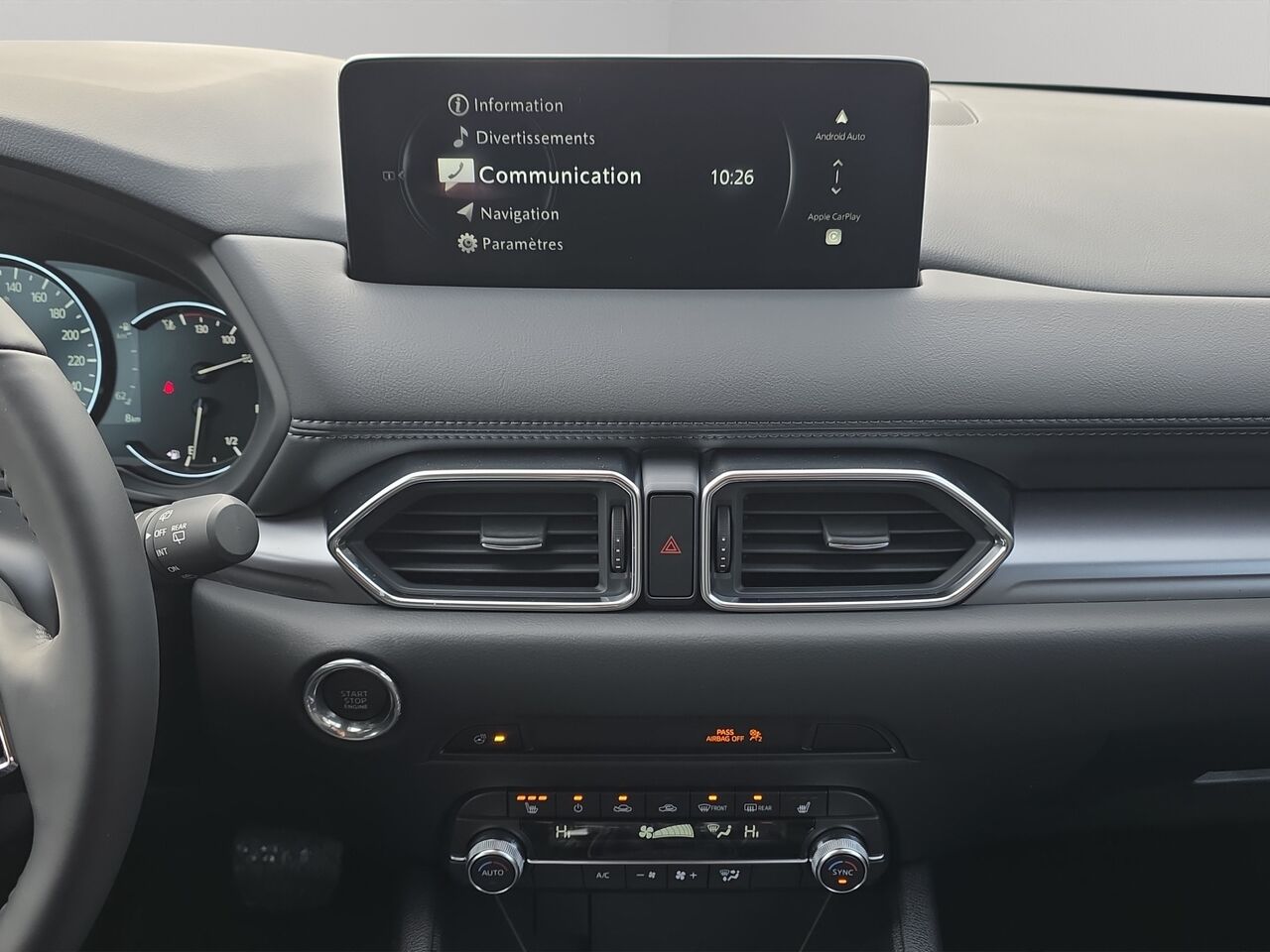 Disponible, awd, roues en alliage, ouverture du hayon à commande électrique avec réglage de la hauteur programmable, dégivreur d’essuie-glace avant, volant chauffant, garnissage en similicuir , phares à DEL , système intelligent de sélection de mode de conduite Mazda (Mi-Drive) avec mode hors route, écran central tactile pour Apple CarPlayMC et Android Auto, services connectés Mazda, Apple CarPlay filaire, Android Auto fililaire, bloc d’instruments avec écran ACL de 7 po, sièges avant chauffants (trois réglages de température),Technologies de sécurité i-Activsense