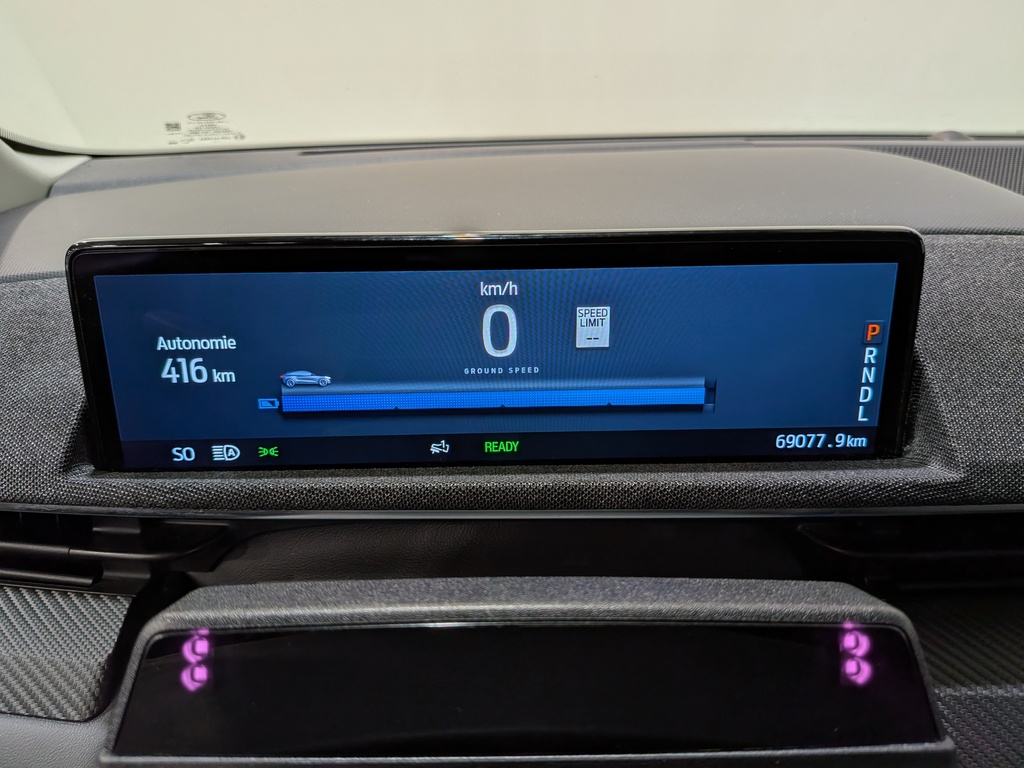 Instruments -comprend : indicateur de vitesse, odomètre, niveau de charge de la batterie de traction, consommation et récupération d’énergie, compteur journalier et ordinateur de voyage