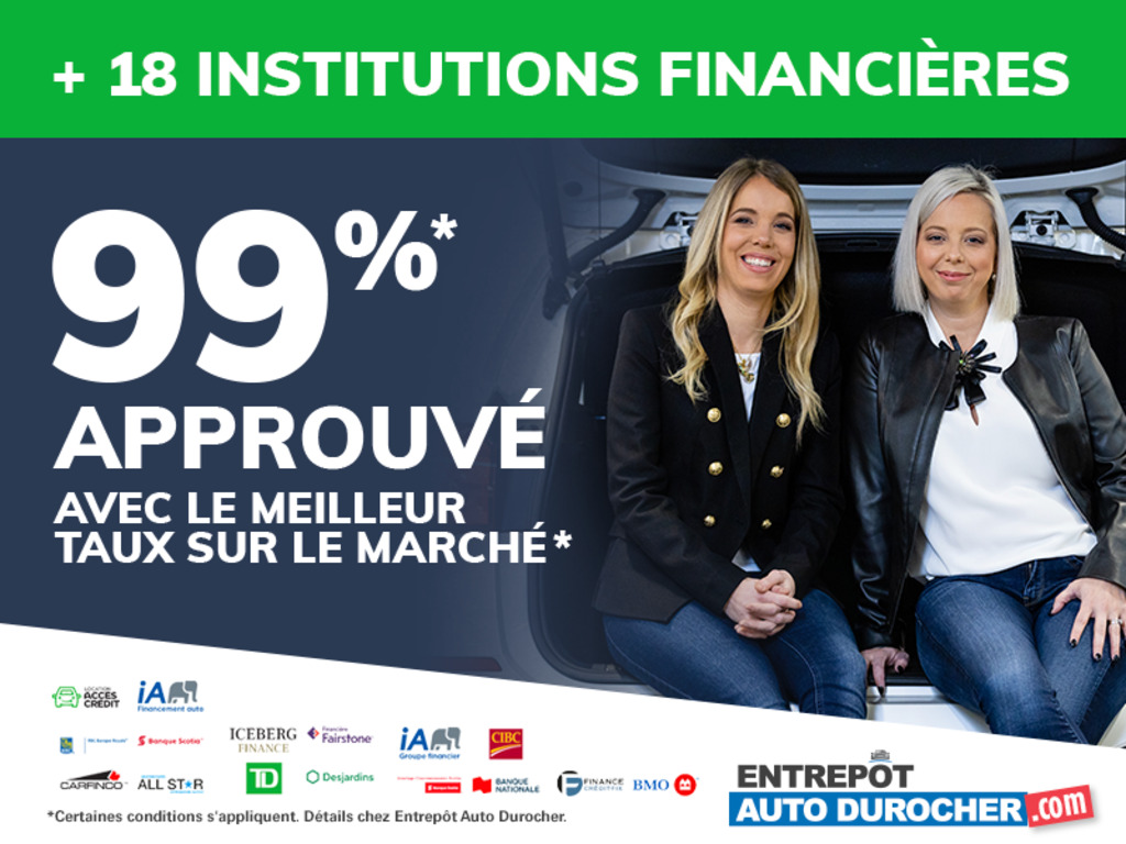 Climatisation Bluetooth Régulateur de vitesse Caméra de recul Volant chauffant Commandes audio au volant Toit ouvrant électrique Écran tactile Vitres électriques Verrouillage centralisé Rétroviseurs électriques Sièges chauffants Télédévérouillage Prise auxiliaire 12 V Port USB Radio satellite Détecteur d'angle mort Apple Carplay Wi-Fi DEMANDE DE PRÊT EN LIGNE : Préqualifiez-vous pour le véhicule de vos rêves ! Restez dans le confort de votre foyer et remplissez un formulaire en ligne. Vous pouvez le retrouver directement sur notre site internet dans la section Financement. FINANCEMENT : Nous sommes affiliés avec plus de 18 institutions financières afin de trouver le meilleur plan de financement pour votre nouveau véhicule. Avec le meilleur taux sur le marché, 99% de nos transactions sont approuvées ! Nos conseillers financiers se feront un plaisir de vous aider tout au long de votre processus dachat. INSPECTION : Tous nos véhicules sont soumis à une inspection minutieuse effectuée par nos mécaniciens certifiés. De plus, ils sont reconditionnés selon les normes du Code de la sécurité routière. ÉCHANGE : Peut importe lannée, la marque, le modèle ou le kilométrage de votre véhicule, nous reprenons votre véhicule en échange au meilleur prix. Nous reprenons même les véhicules récréatifs ! De plus, nous vous offrons un prix pour votre véhicule même si vous souhaitez seulement le vendre. QUI SOMMES NOUS ? De ses débuts en 1969 jusquà aujourdhui, Entrepôt Auto Durocher demeure une entreprise familiale fidèle à ses valeurs. Notre entreprise se démarque par une approche humaine, un vaste inventaire automobile et par nos solutions de financement variées convenant à tous nos clients. NOS HEURES DOUVERTURE : Nous sommes nouvellement situés au 12000 rue de lAvenir à Mirabel prêt de Bell Hélicoptère. Nos heures douverture sont du lundi au vendredi de 9h à 20h le samedi de 9h à 15h et le dimanche de 10h a 15h. Air conditioning Bluetooth Cruise control Rearview camera Heated steering wheel Steering wheel audio controls Electric sunroof Touchscreen display Electric windows Central locking Electric mirrors Heated seats Remote keyless entry 12V auxiliary input USB port Satellite radio Blind spot monitoring Apple CarPlay Wi-Fi FINANCING AVAILABLE: Pre-qualify for you dream car! From the comfort of your own home, fill in the form online. You can find it in the Financing section directly on our website. FINANCING: We are affiliated with over 18 financial institutions to find the best financing plan for your new vehicle. With the best rates on the market, 99% of our transactions are approved! Our financial advisors will be happy to help you throughout the purchasing process. INSPECTION: All our vehicles undergo a thorough inspection by our certified mechanics. They are reconditioned in compliance with the Highway Safety Code. EXCHANGE: Whatever the year, make, model or mileage of your vehicle, well take it back at the best price. We even take back recreational vehicles! On the other hand, we will buy your vehicle even if you only want to sell it. WHO ARE WE? From its beginnings in 1969 to the present day, Entrepôt Auto Durocher has remained a family-run business, true to its values. Our company stands out for its outstanding approach, vast automotive inventory and varied financing solutions to suit all our customers. OUR OPENING HOURS: We are newly situated at 12000 rue de lAvenir, near Bell Helicopter. We are open Monday to Friday from 9AM to 8PM and Saturday from 9AM to 3PM and Sunday from 10 am to 3 pm.